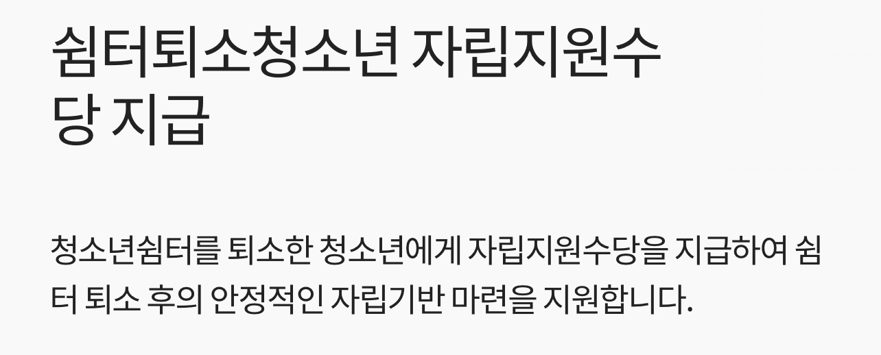 쉼터를 떠난 청소년의 자립을 지원하기 위한 지원금 개요