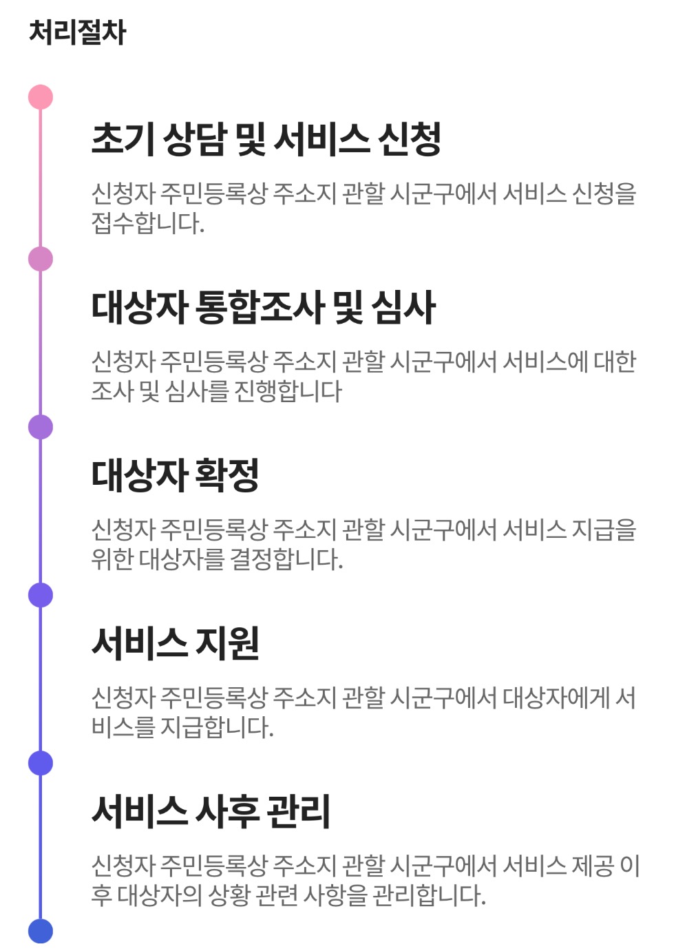 서비스 제공 후, 신청인의 주소지를 관할하는 지자체에서 신청인의 상황과 관련된 사항을 해결합니다.