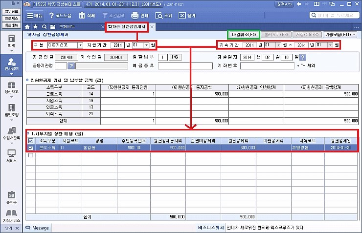 (더존인사/Duzon smart-a) 더존 급여명세서에 학자금 상환금액 반영, 학자금 상환명세서 신고