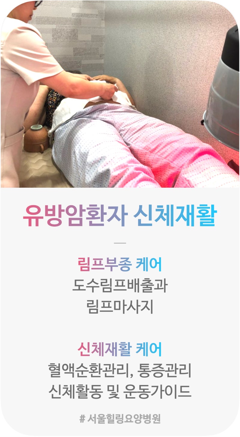 저희 영통유방암요양병원, 중수원요양병원에서는 유방암 치료와 수술 후 관리를 도와드리고 있습니다. 암은 재발하거나 전이될 수 있으므로 암을 치료할 수 있는 체형을 유지하는 데 도움이 되는 맞춤형 관리를 통해 추적 관리를 하는 것이 좋습니다. https://mblogthumb-phinf.pstatic.net/MjAxOTEwMjVfMTg3/MDAxNTcxOTkzMDMyNjc0.vzLW21UH7squPEv7det69Y6R4qUE7blYrZkyGIBzOB0g.SXcPLMkkB5NwqljtyoXqA6U422PsxzAproc7n.CJKx