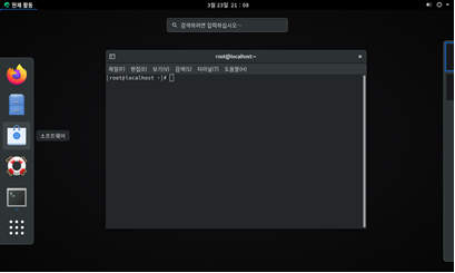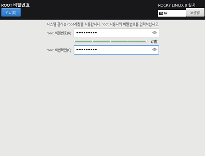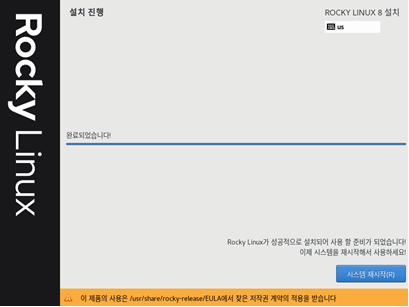 설치가 완료된 후 록킹 리눅스화면이 실행 중입니다