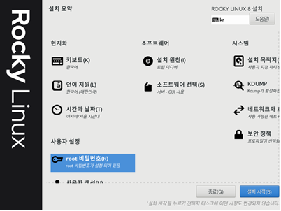언어 설정 후 설치 요약 화면이 표시됩니다.